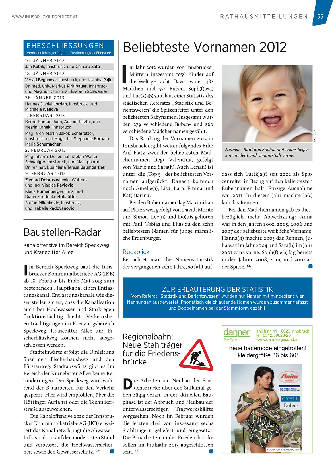 Bei den Mädchennamen gab es diesbezüglich mehr Abwechslung: Anna