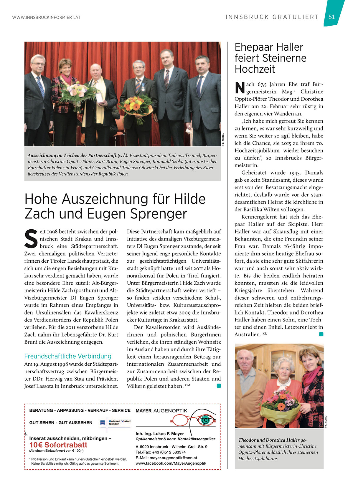 zur geschichtsträchtigen Universitätsstadt geknüpft hatte und seit 2011 als Honorarkonsul für Polen in Tirol fungiert.