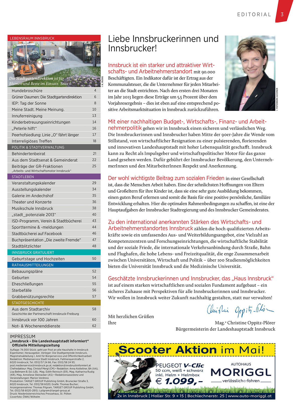auflage: 74.000 stück; geht per Post an alle Haushalte in innsbruck