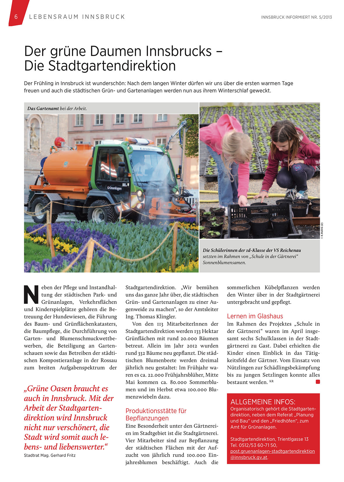Arbeit der Stadtgartendirektion wird Innsbruck