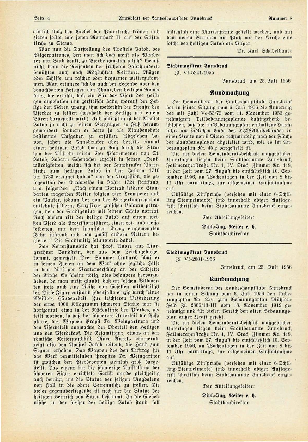 Allfällige Einsprüche (versehen mit einer li-Schilling-Stempelmarke) sind innerhalb obiger Auflagefrist schriftlich beim Stadtbauamte Innsbruck ei