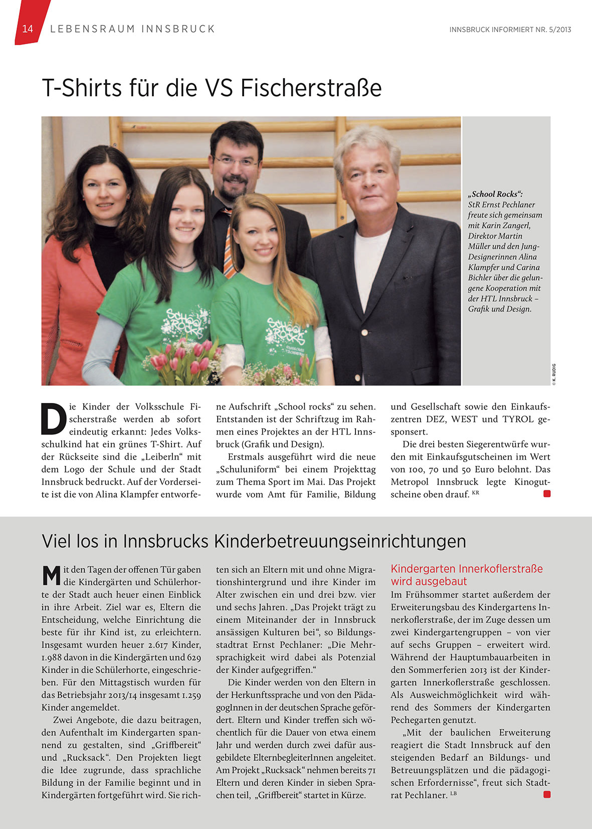 Betreuungsplätzen und die pädagogischen Erfordernisse“, freut sich Stadtrat Pechlaner. LB
