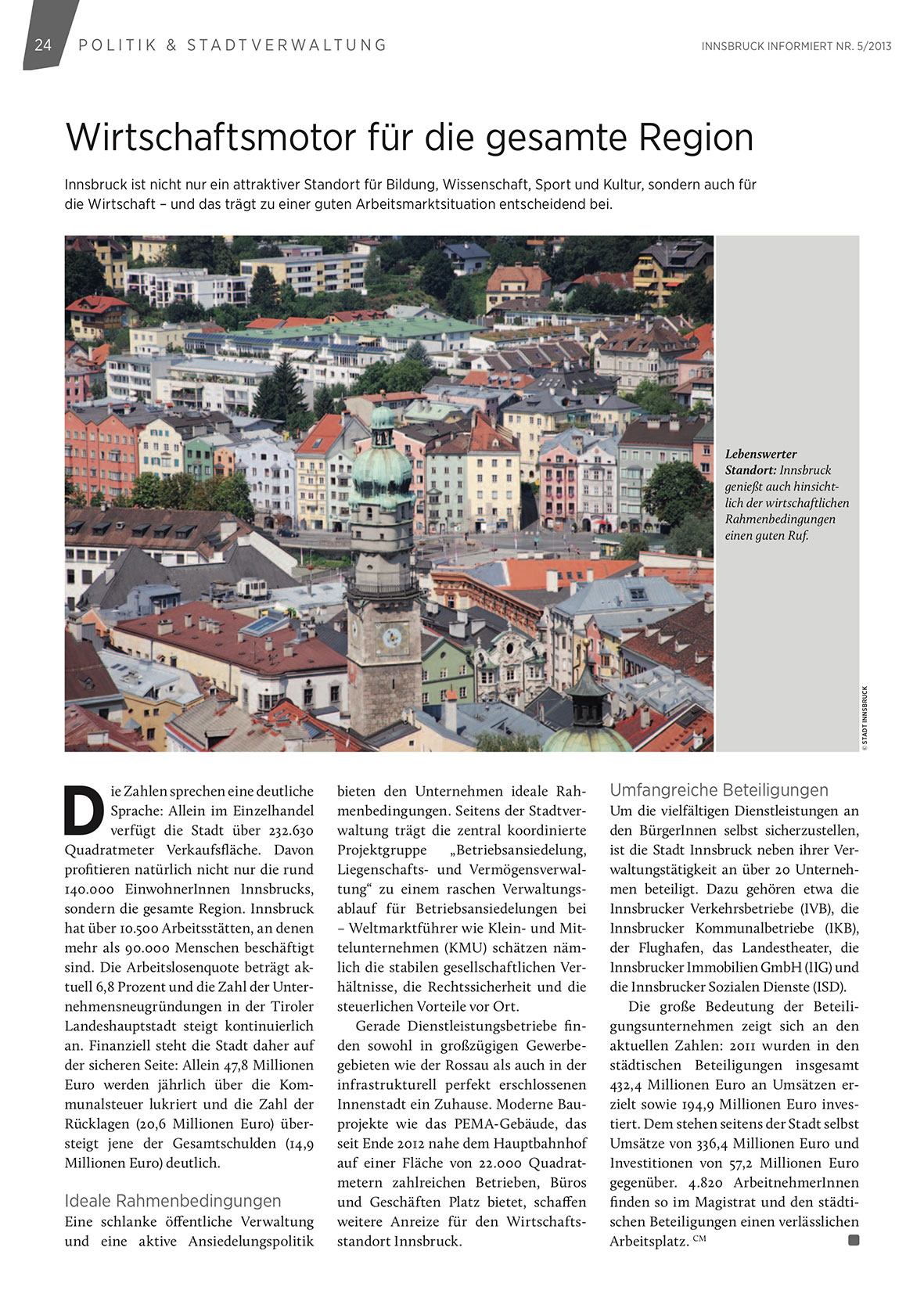 Innsbruck ist nicht nur ein attraktiver Standort für Bildung, Wissenschaft, Sport und Kultur, sondern auch für
