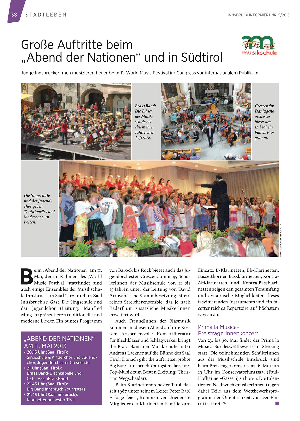 auch einige Ensembles der Musikschule Innsbruck im Saal Tirol und im Saal