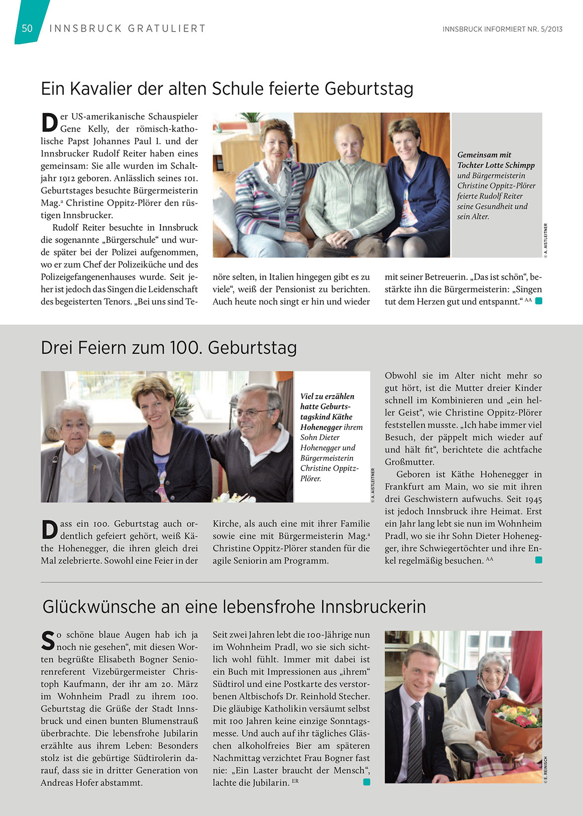 ass ein 100. Geburtstag auch ordentlich gefeiert gehört, weiß Käthe Hohenegger, die ihren gleich drei