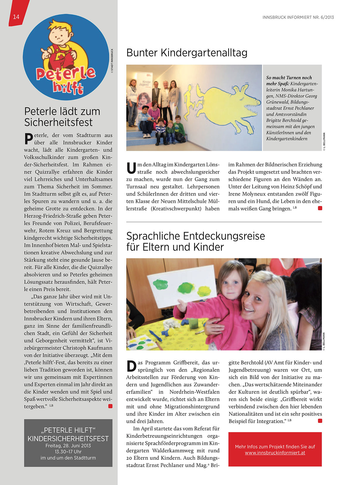ganz im Sinne der familienfreundlichen Stadt, ein Gefühl der Sicherheit