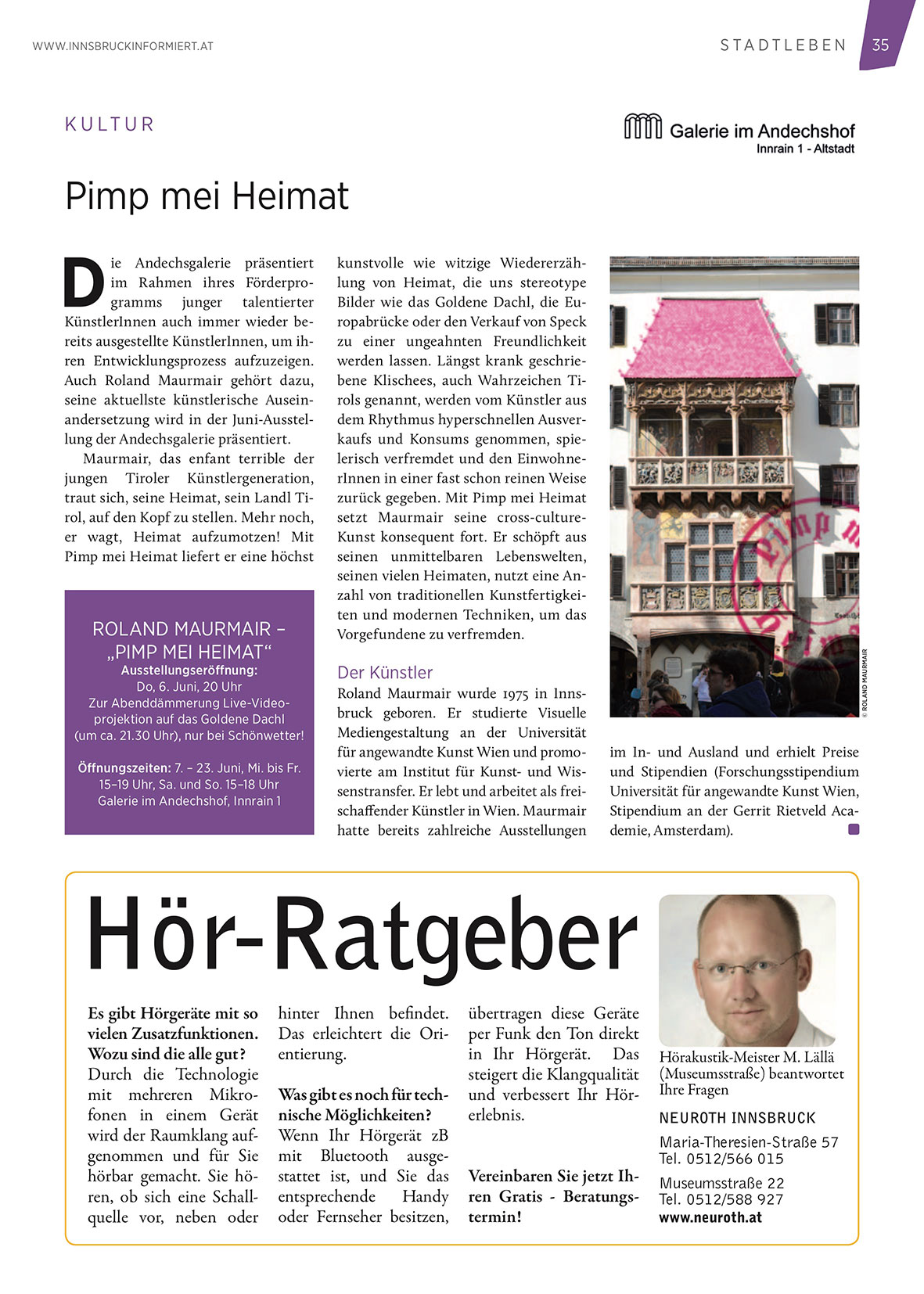 werden lassen. Längst krank geschriebene Klischees, auch Wahrzeichen Tirols genannt, werden vom Künstler aus