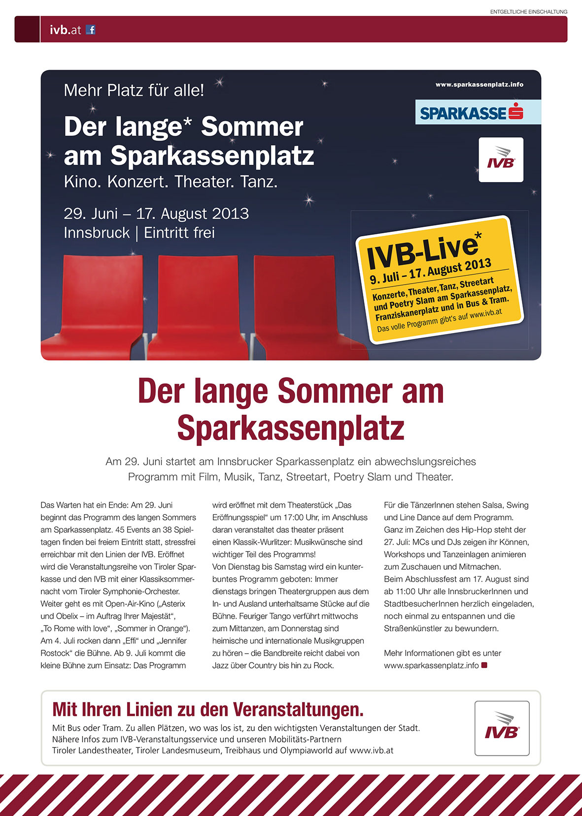 Am 29. Juni startet am Innsbrucker Sparkassenplatz ein abwechslungsreiches