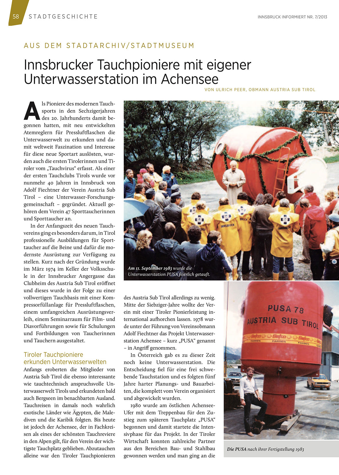 Tirol – eine Unterwasser-Forschungsgemeinschaft – gegründet. Aktuell gehören dem Verein 47 Sporttaucherinnen
