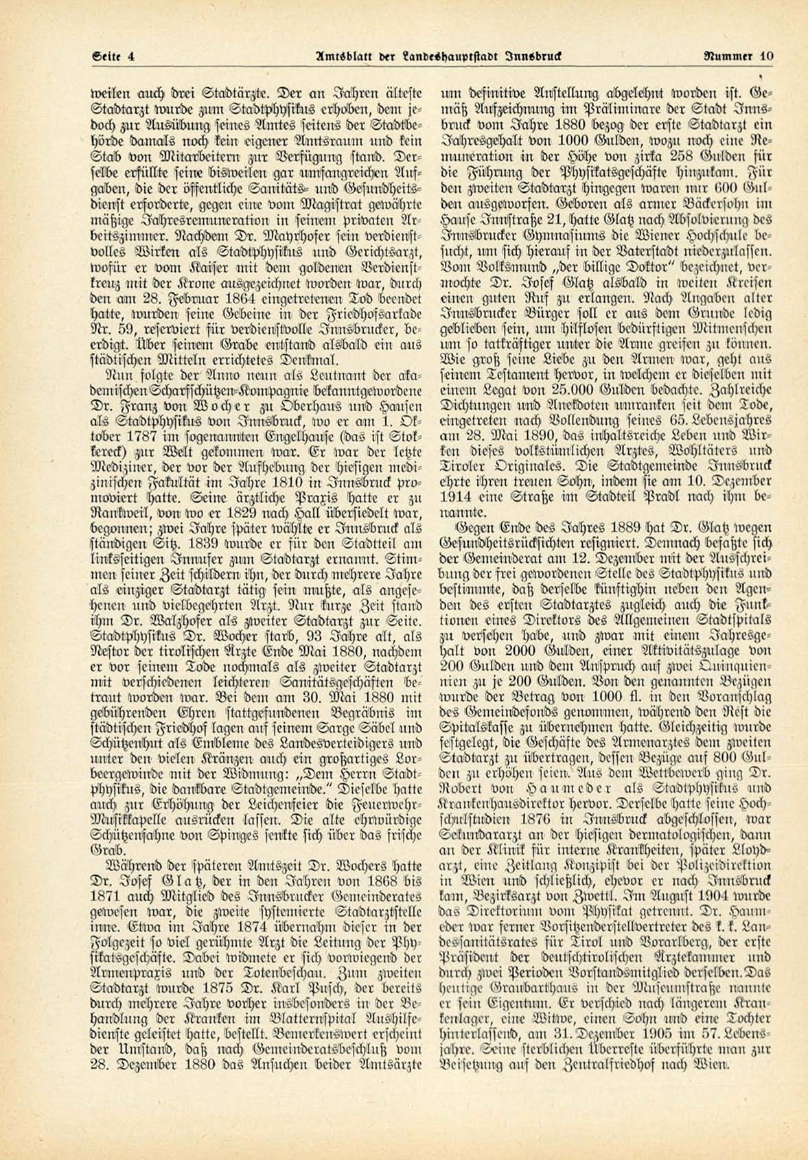linksseitigen Innuser zum Stadtarzt ernannt. Stimmen seiner Zeit schildern ihn, der durch mehrere Jahre