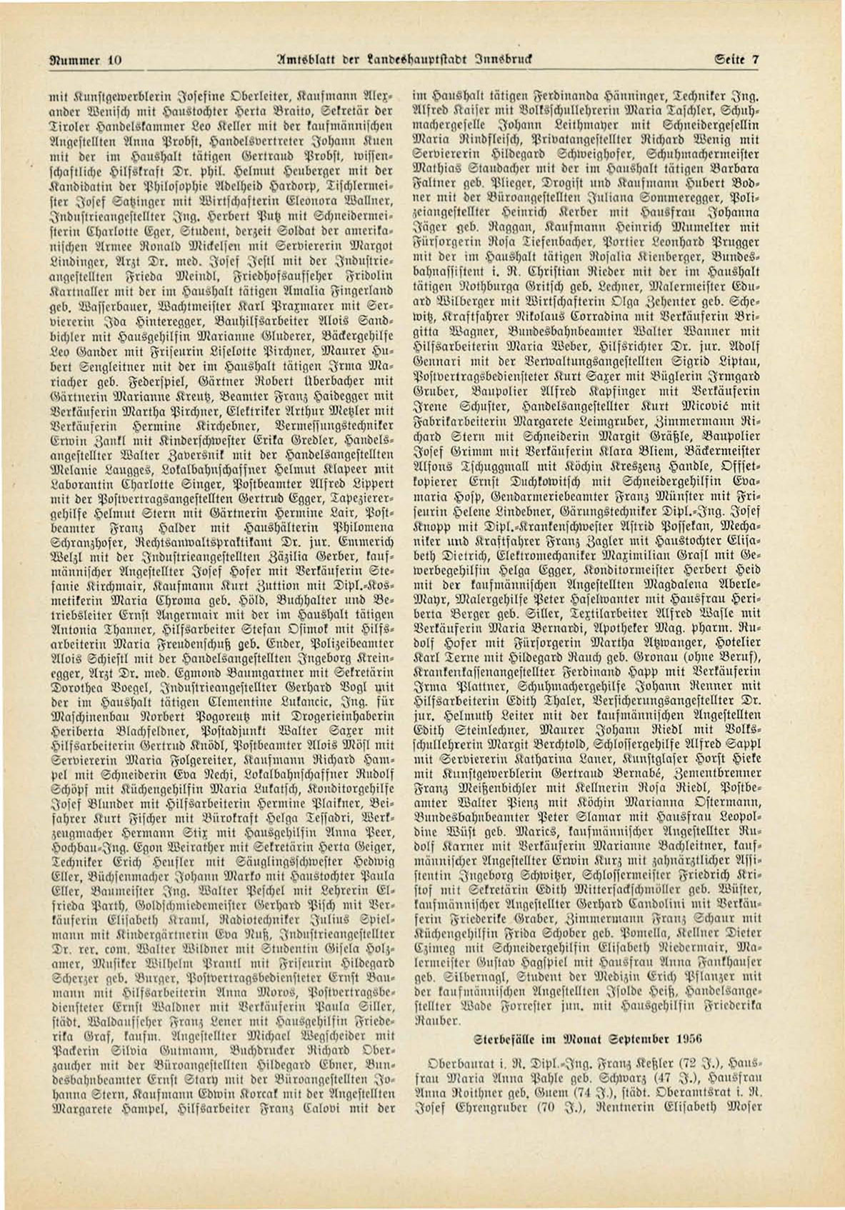 Wclzl mit der Judnstricaugestellten Zäzilia Gerber, kaufmännischer Angestellter Josef Hofer mit Verkäuferin Stefanie Kirchmair, Kaufmann Knrt Zuttion mit Dipl.-Kosmetikerin Maria Ehroma geb. Hold, Buchhalter nnd Betriebsleiter Ernst Angcrmair mit der im Haushalt tätigen