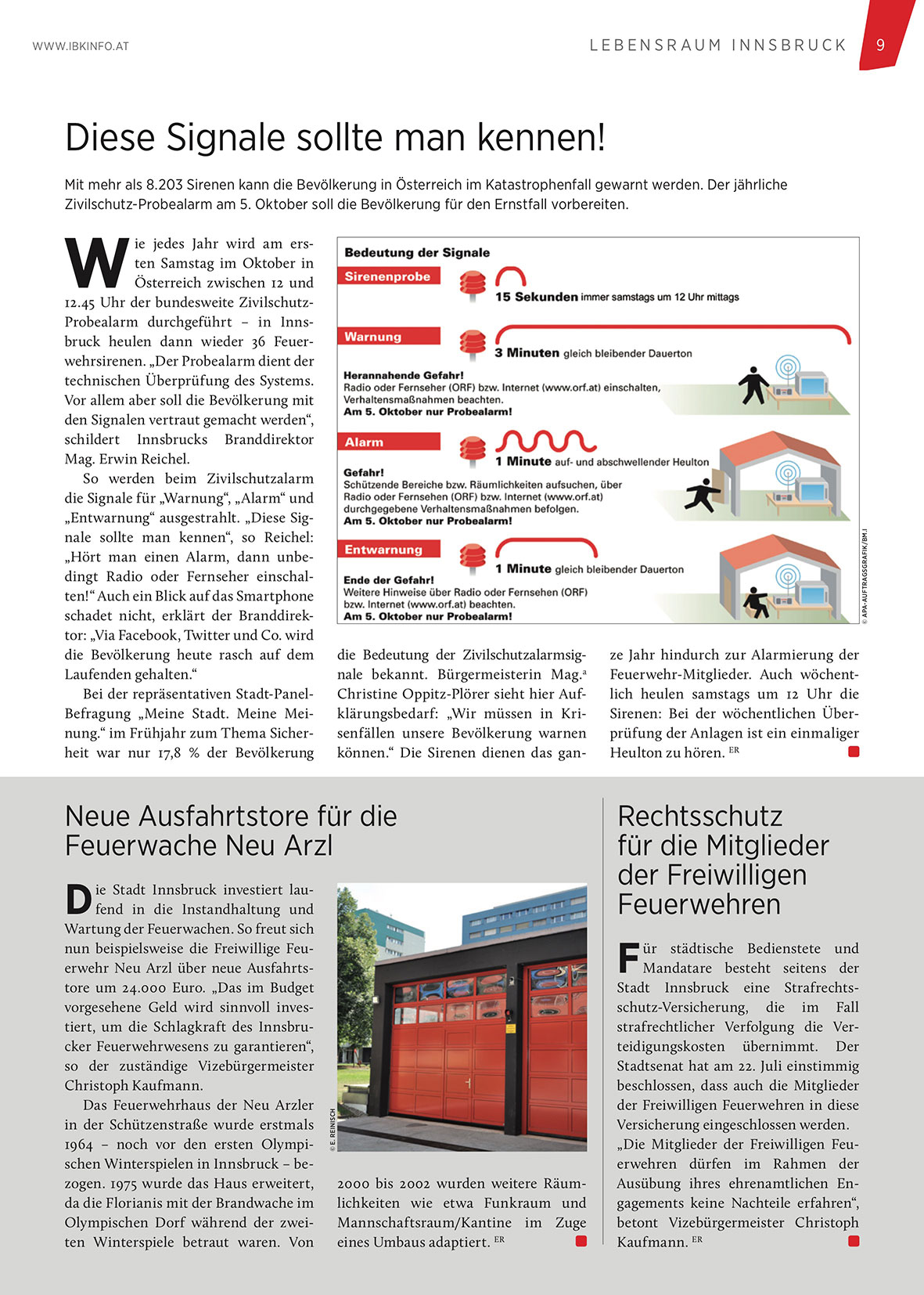 12.45 Uhr der bundesweite ZivilschutzProbealarm durchgeführt – in Innsbruck heulen dann wieder 36 Feuerwehrsirenen. „Der Probealarm dient der