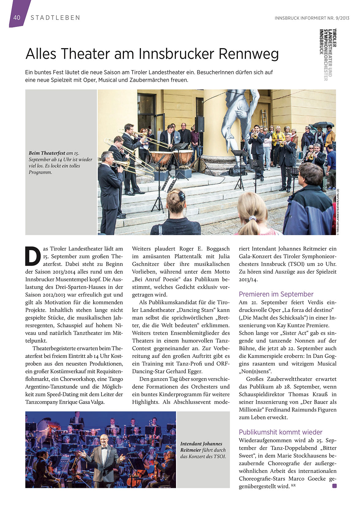 Innsbrucker Musentempel kopf. Die Auslastung des Drei-Sparten-Hauses in der