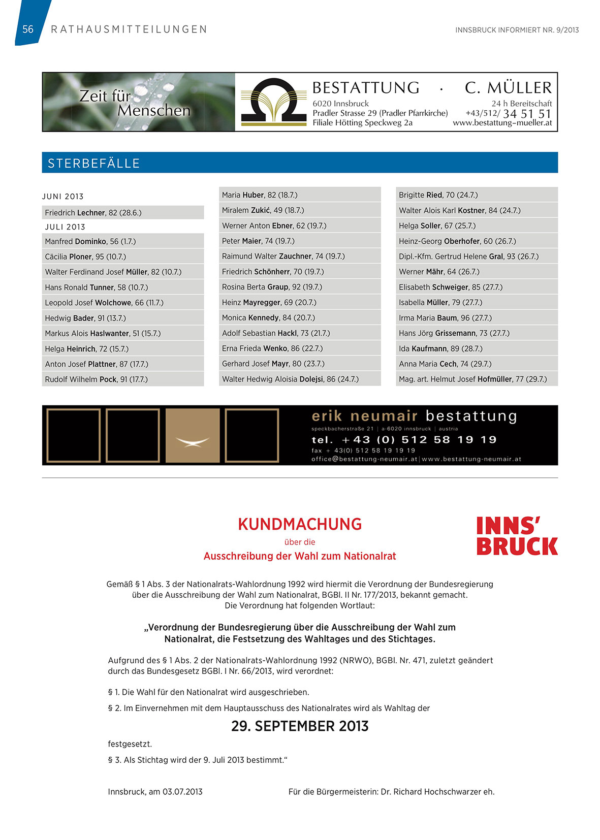 über die Ausschreibung der wahl zum nationalrat, BGBl. ii nr. 177/2013, bekannt gemacht.