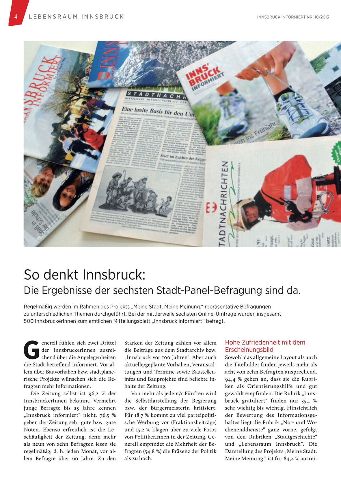 500 InnsbruckerInnen zum amtlichen Mitteilungsblatt „Innsbruck informiert“ befragt.
