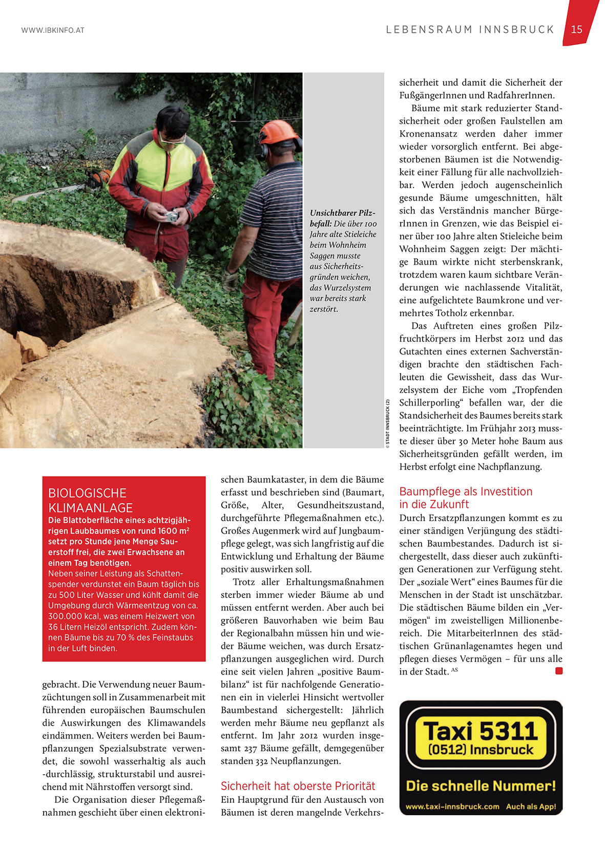 Die städtischen Bäume bilden ein „Vermögen“ im zweistelligen Millionenbereich. Die MitarbeiterInnen des städtischen Grünanlagenamtes hegen und