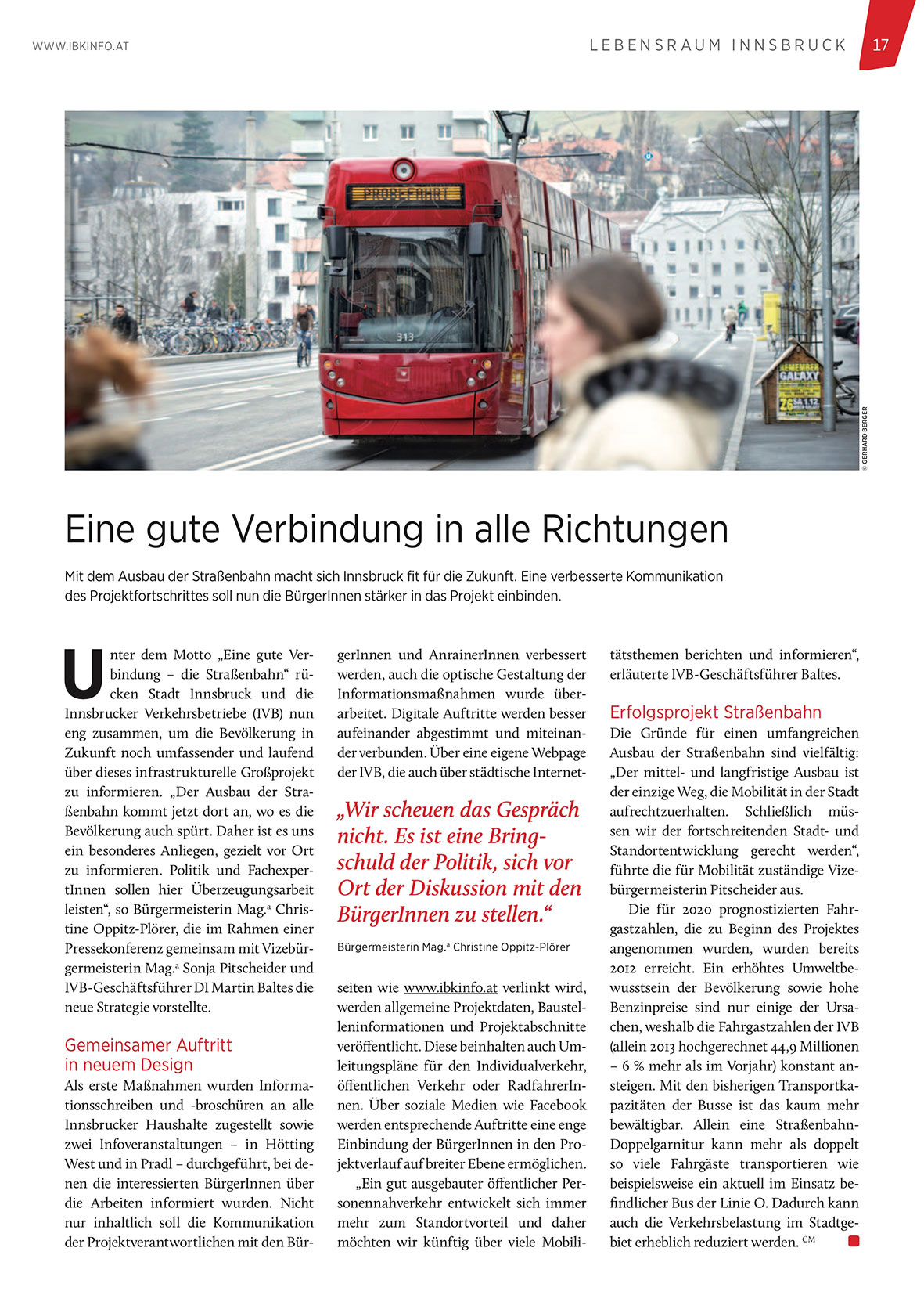 Mit dem Ausbau der Straßenbahn macht sich Innsbruck fit für die Zukunft. Eine verbesserte Kommunikation