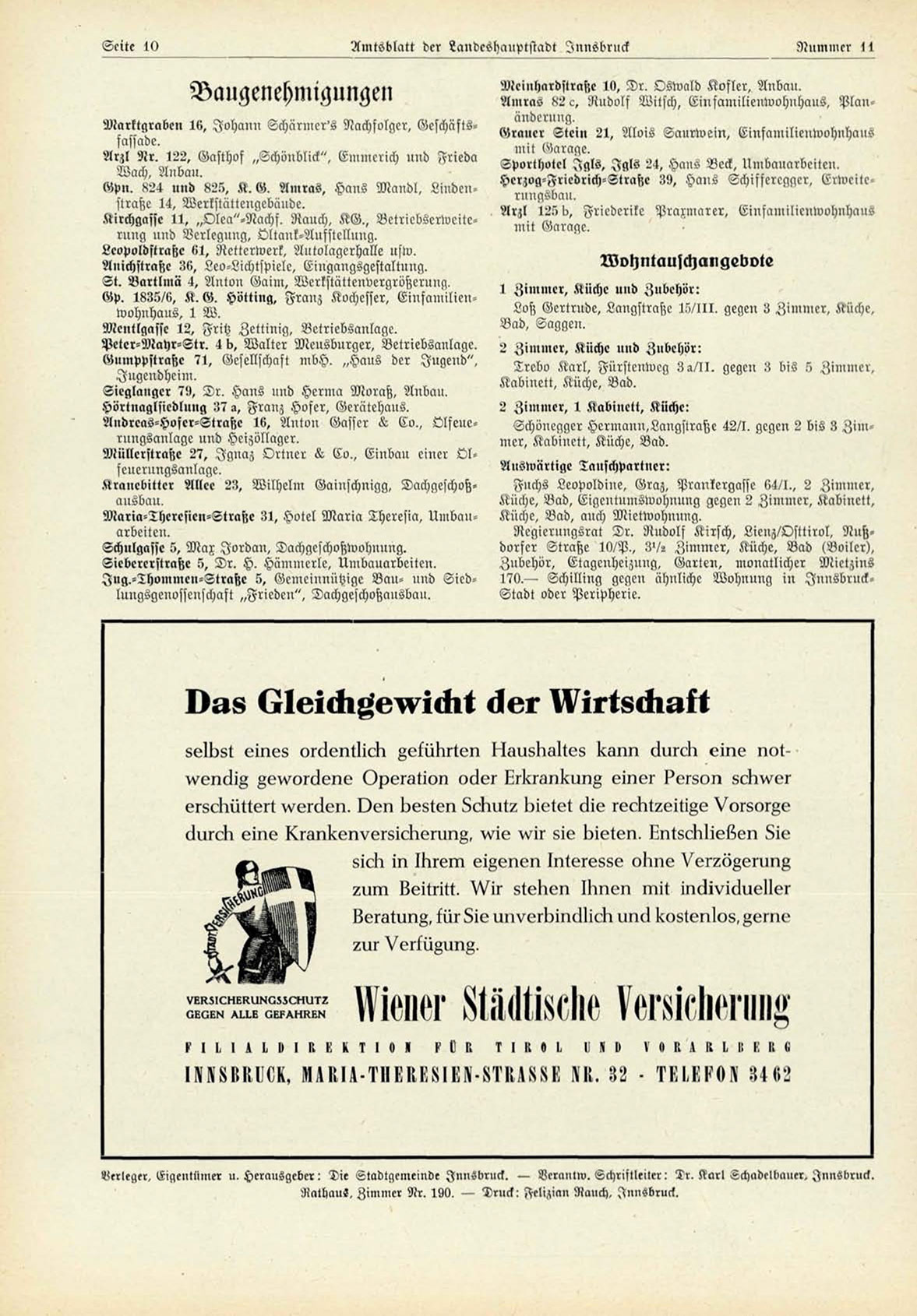 Rathaus. Zimmer Nr. 190. — Druck: Felizian Rauch, Innsbruck.