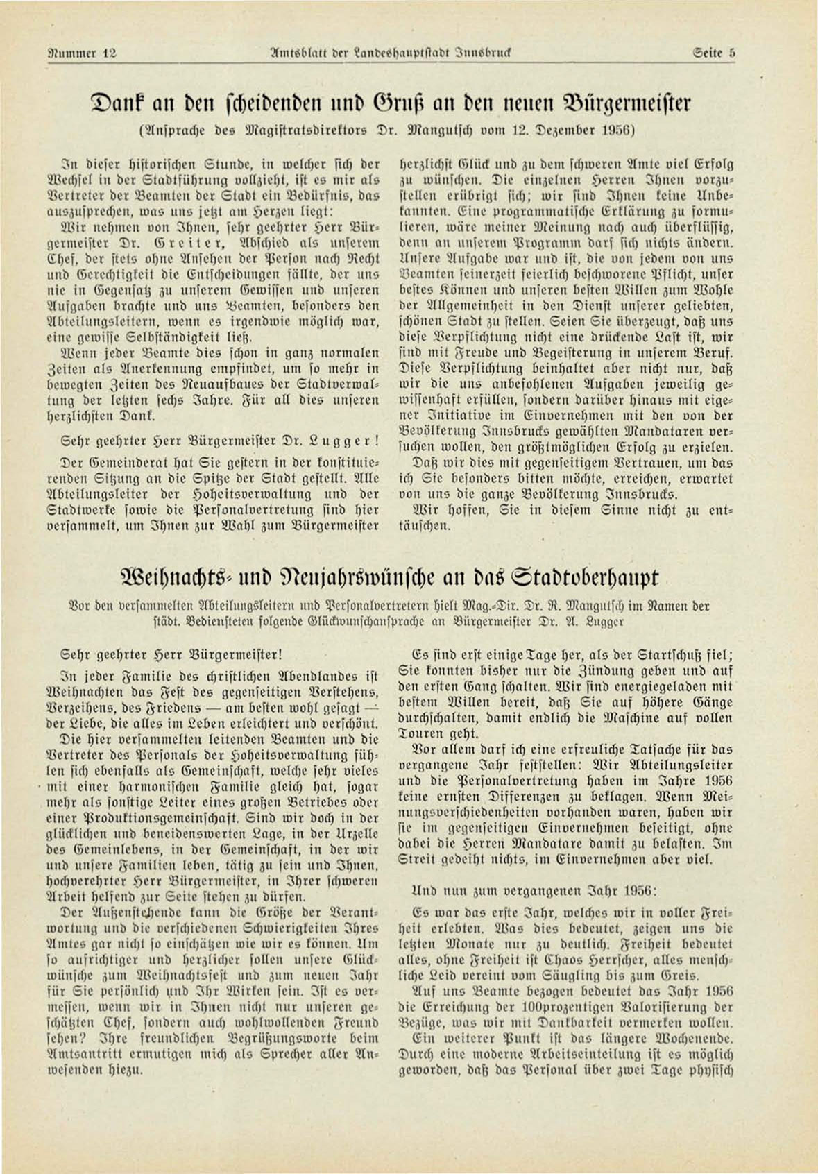 städt. Bediensteten folgende Glückwunschansprache an Bürgermeister Dr. A. Lugger