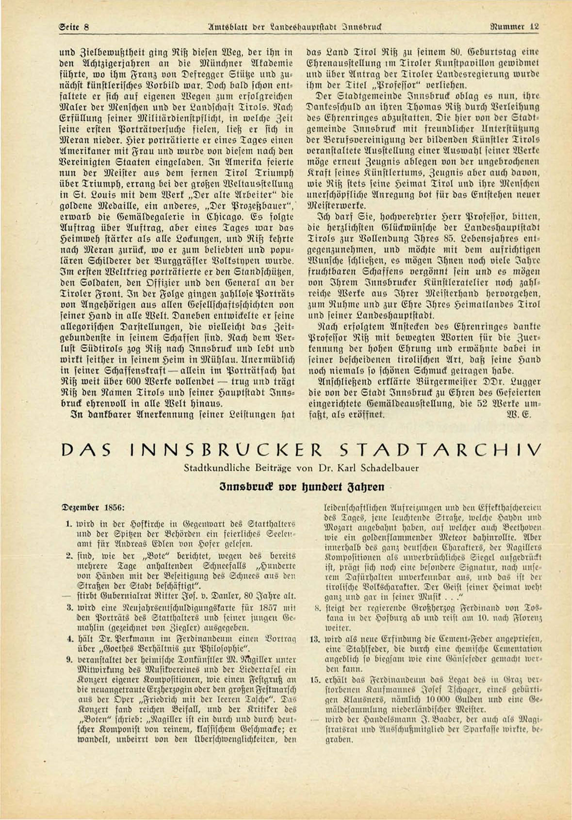Riß den Namen Tirols und seiner Hauptstadt I n n s bruck ehrenvoll in alle Welt hinaus.
