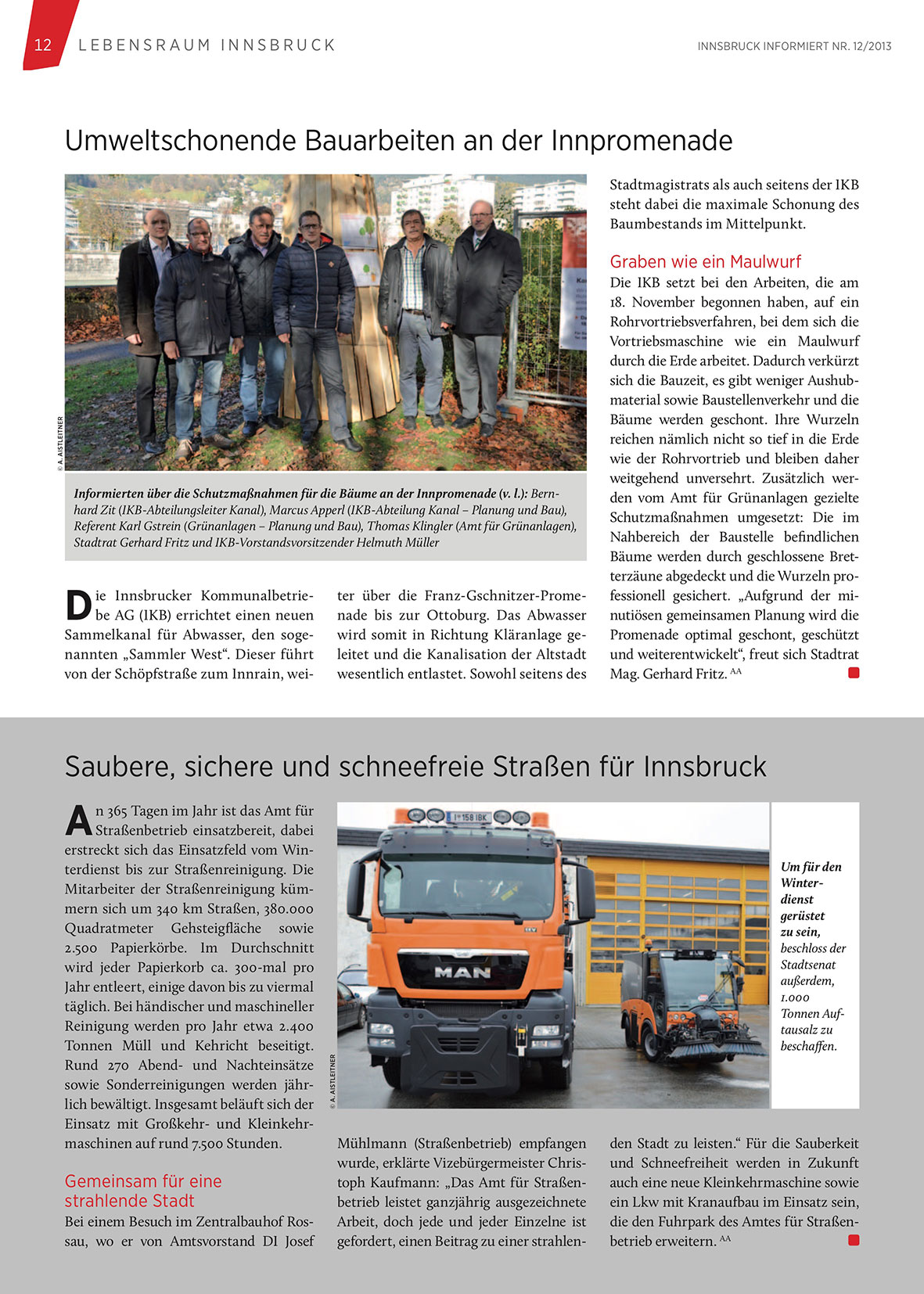 wurde, erklärte Vizebürgermeister Christoph Kaufmann: „Das Amt für Straßenbetrieb leistet ganzjährig ausgezeichnete