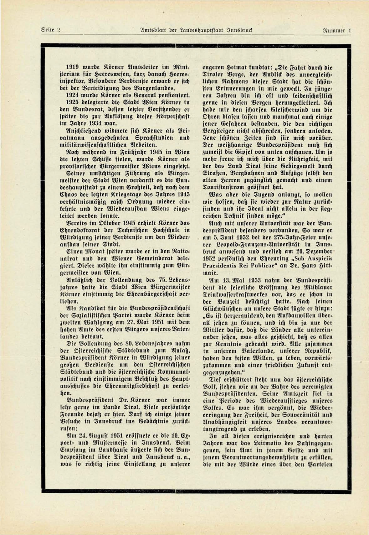 am 5. J u n i 1952 bei der 275-Iahr-Feicr unserer Leopold-Franzens-Universität in I n n s bruck anwesend und verlieh am 2ll. Dezember