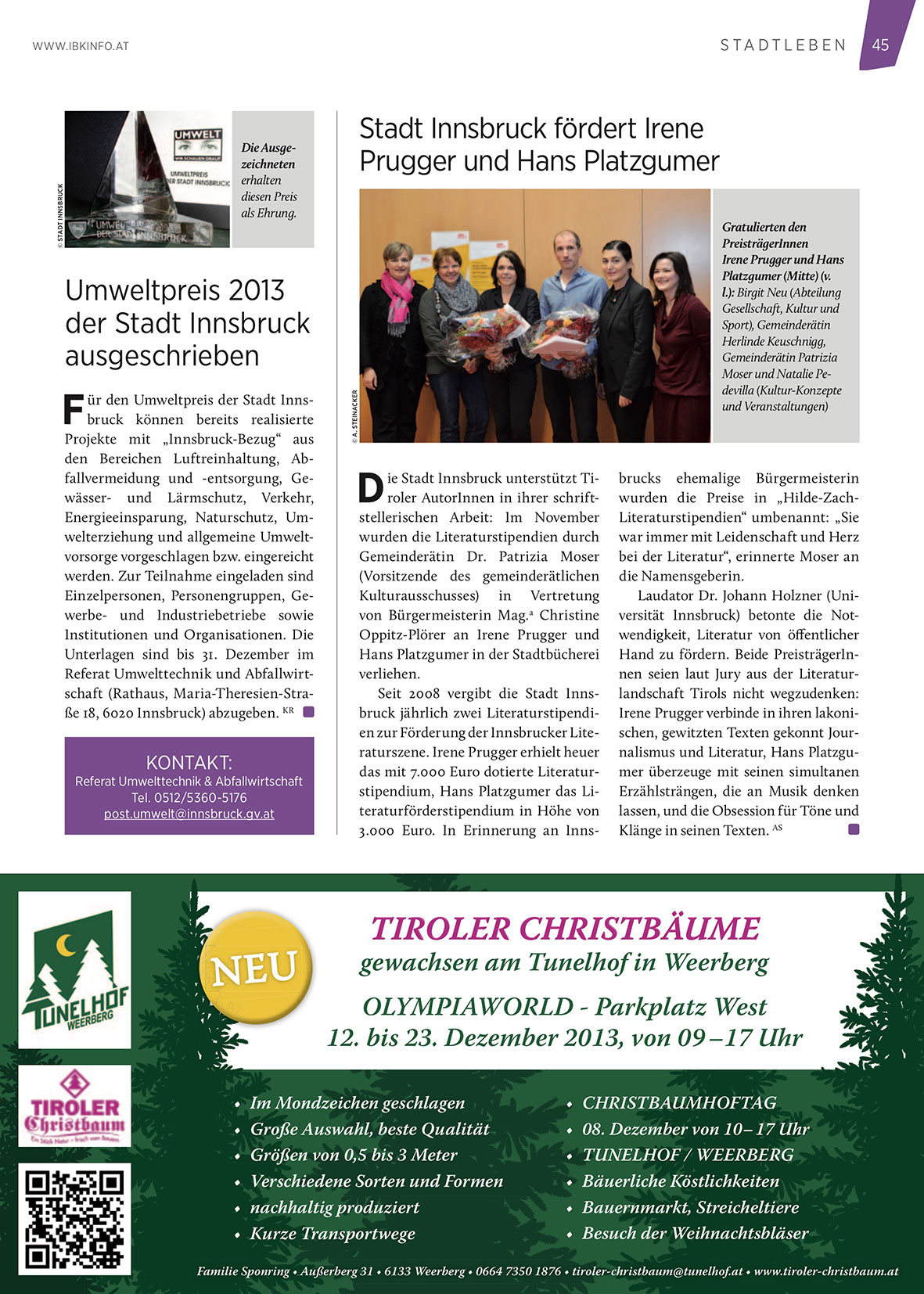 ür den Umweltpreis der Stadt Innsbruck können bereits realisierte