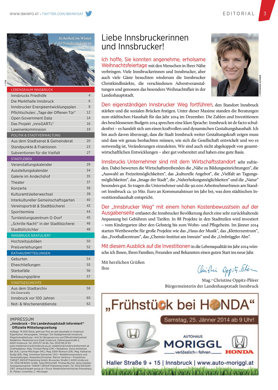 Auflage: 74.000 stück; geht per Post an alle Haushalte in innsbruck