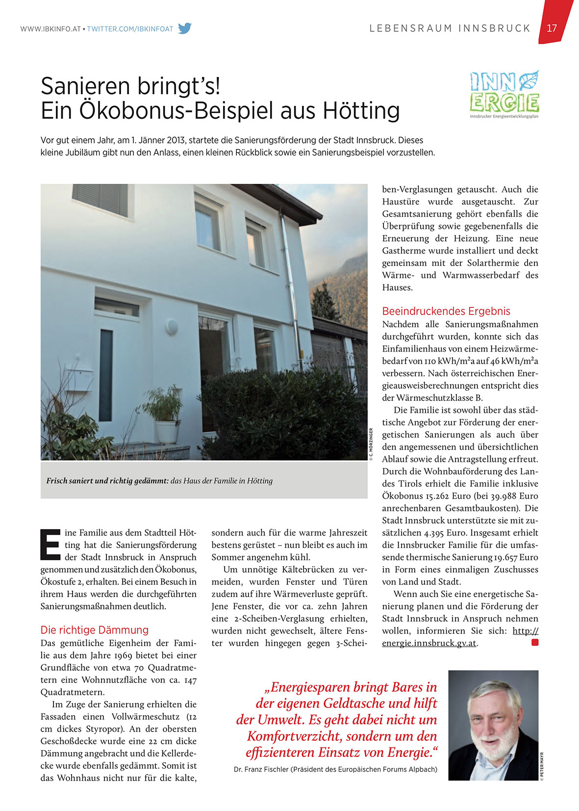 die Innsbrucker Familie für die umfassende thermische Sanierung 19.657 Euro