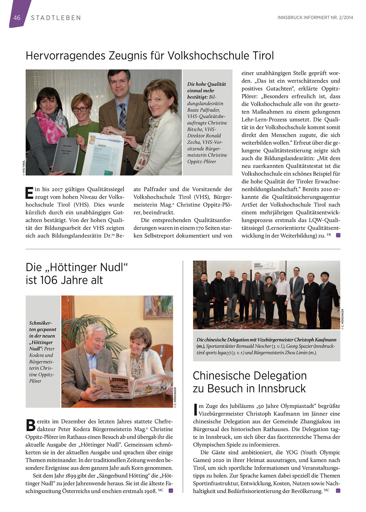 zeugt vom hohen Niveau der Volkshochschule Tirol (VHS). Dies wurde