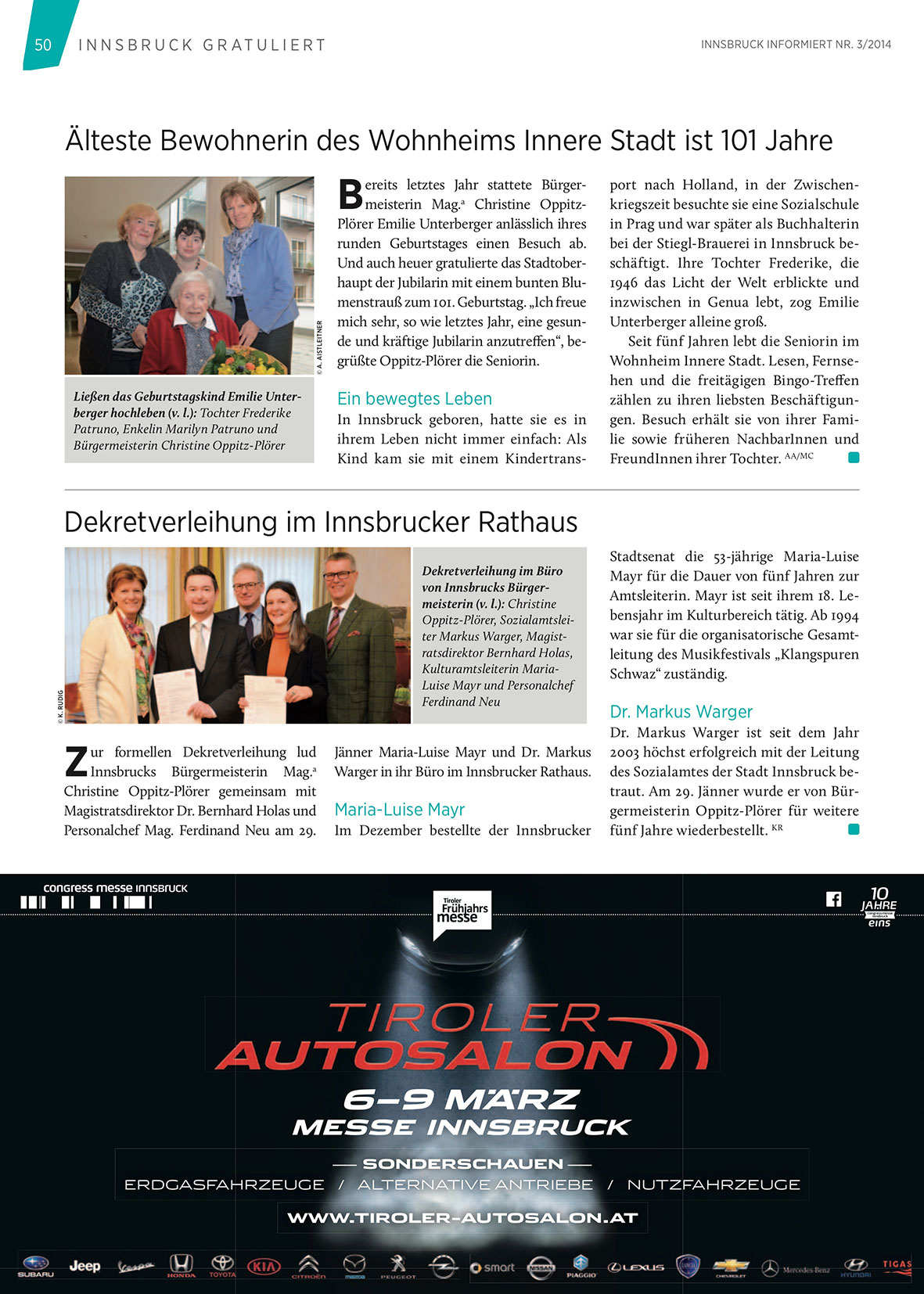 des Sozialamtes der Stadt Innsbruck betraut. Am 29. Jänner wurde er von Bürgermeisterin Oppitz-Plörer für weitere