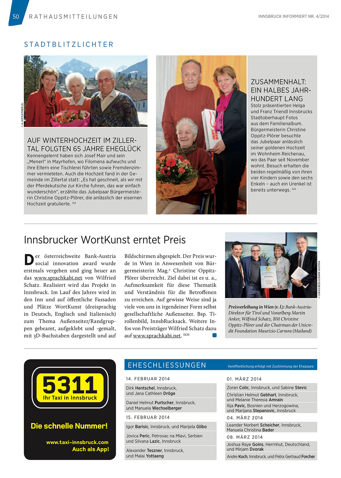 wunderschön“, erzählte das Jubelpaar bürgermeisterin christine oppitz-Plörer, die anlässlich der eisernen