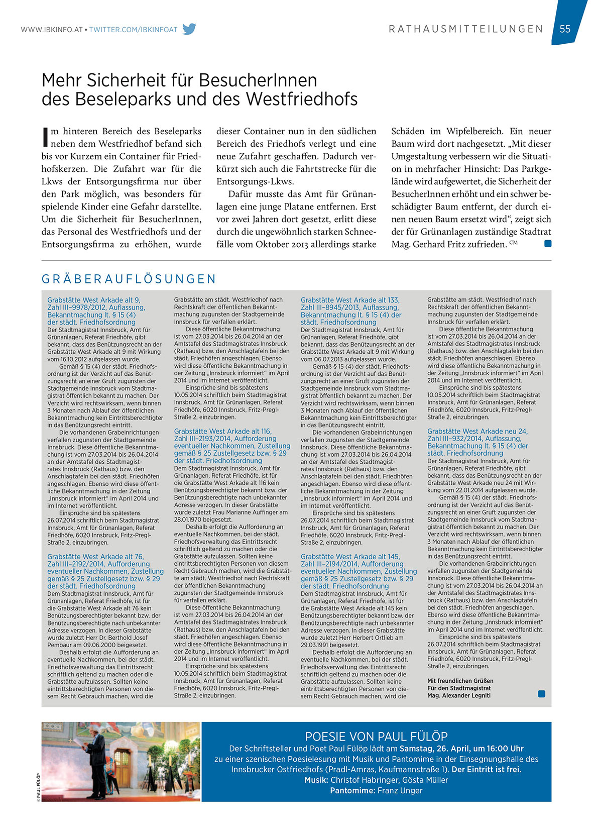 Innsbruck. Diese öffentliche Bekanntmachung ist vom 27.03.2014 bis 26.04.2014