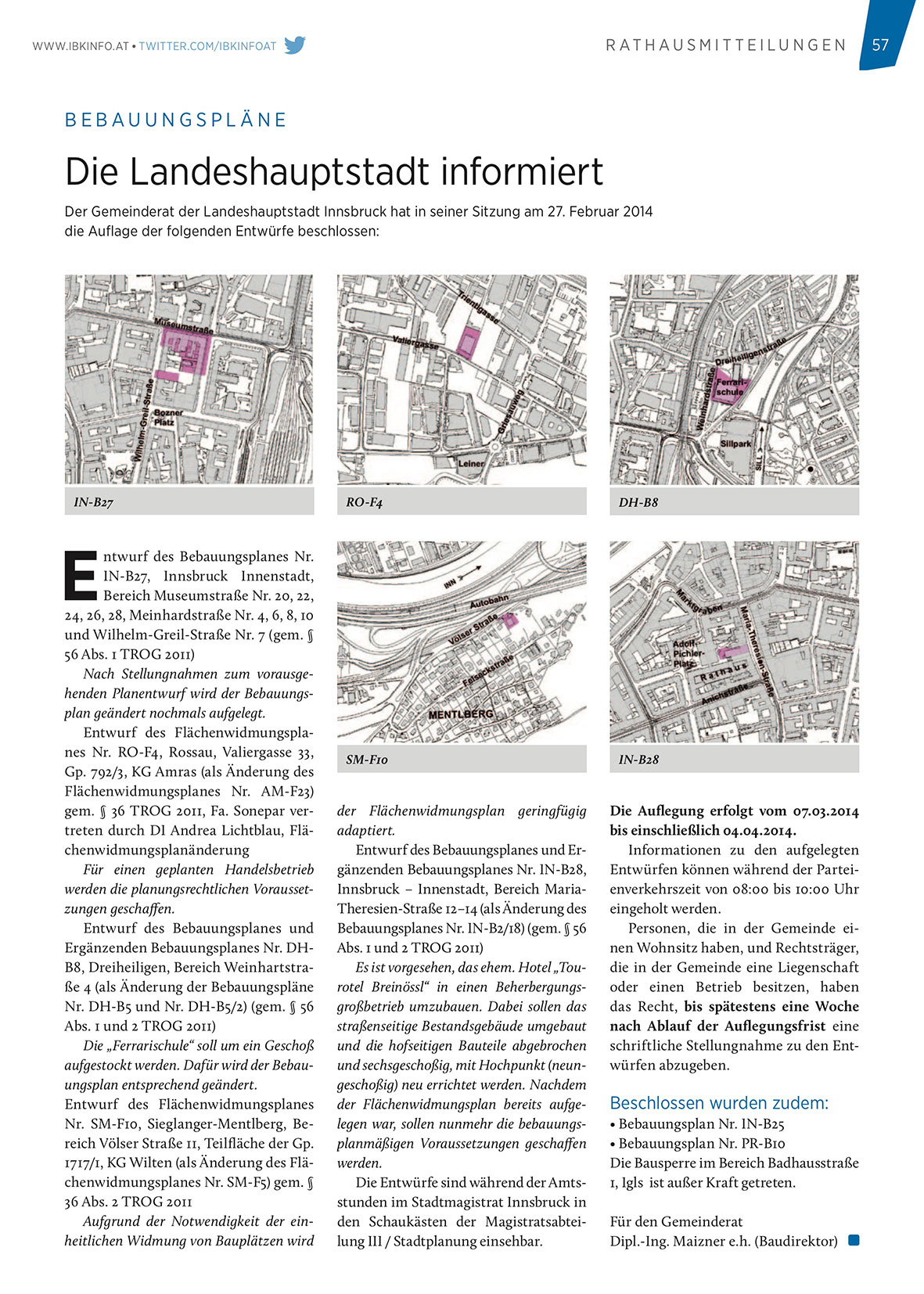 Die Entwürfe sind während der Amtsstunden im Stadtmagistrat Innsbruck in
