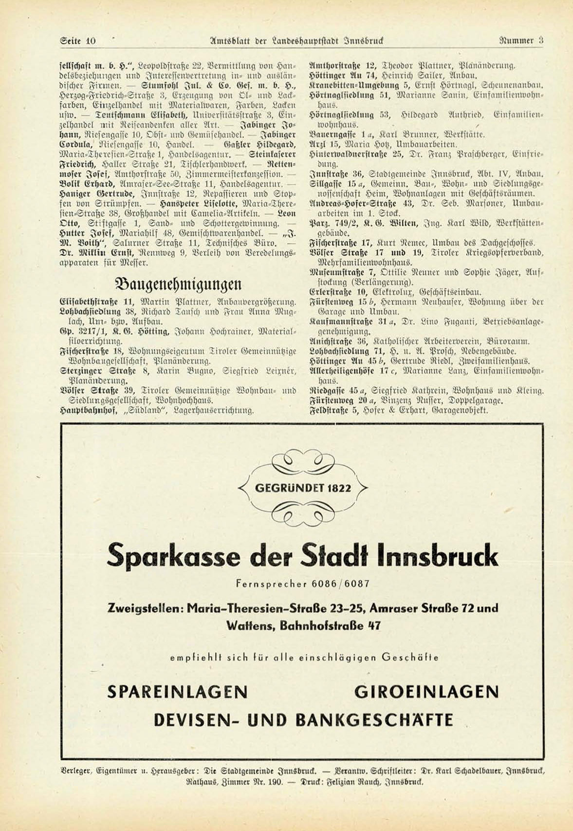 Verleger, Eigentiimer ».Herausgeber: Die Stadtgemeinde Innsbruck. — Uerantw. Schriftleiter: Dr. Karl Schadelbauer, Innsbruck,