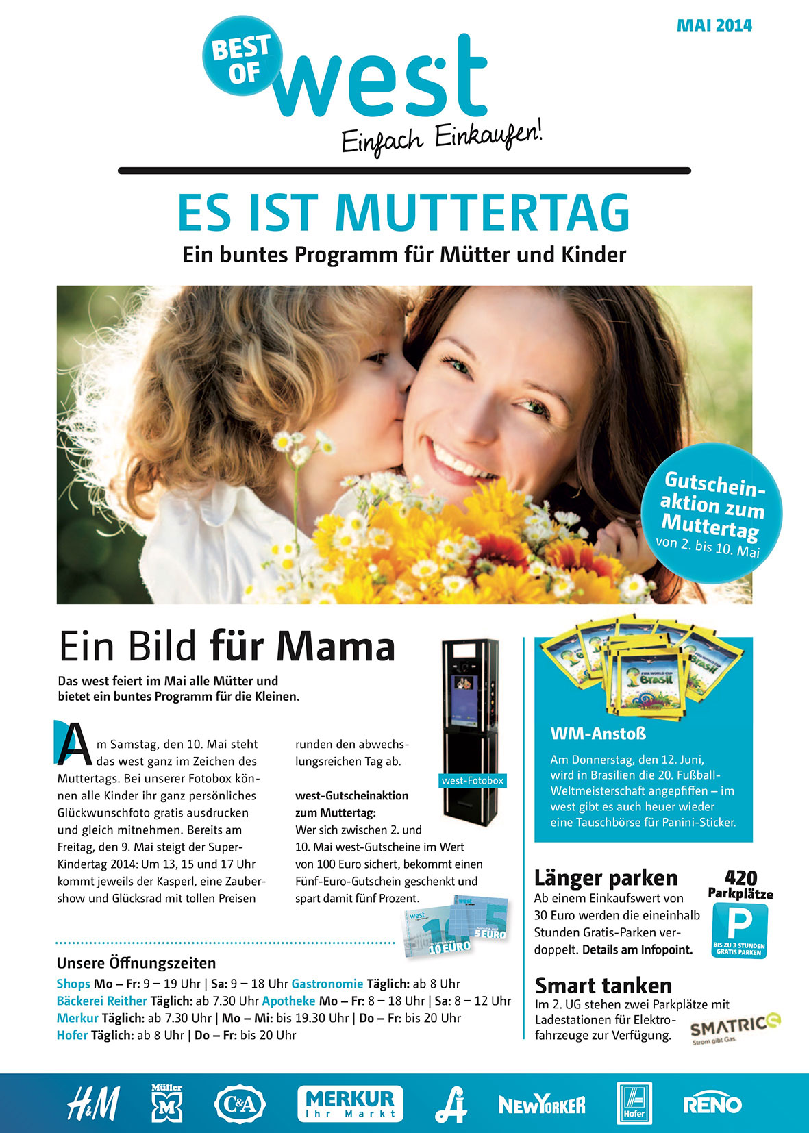 Shops Mo – Fr: 9 – 19 Uhr | Sa: 9 – 18 Uhr Gastronomie Täglich: ab 8 Uhr