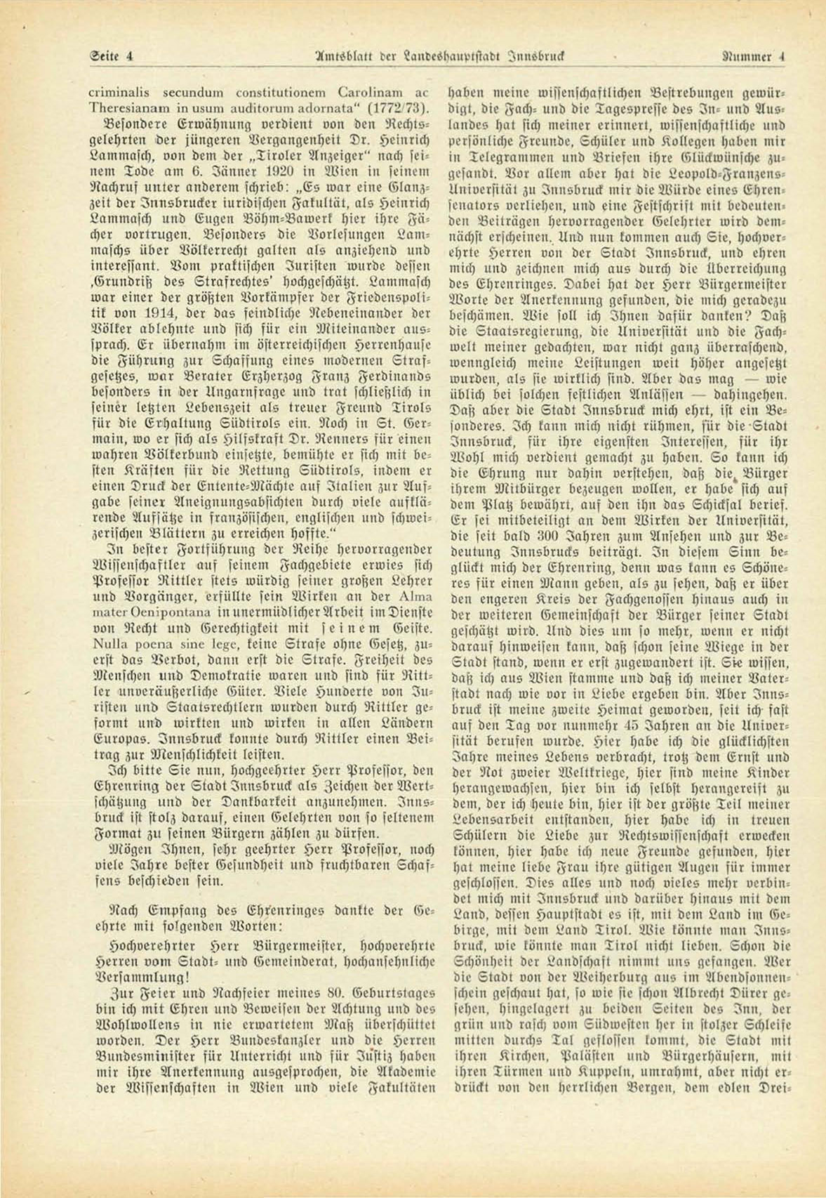 Ehrenring der Stadt Innsbruck als Zeichen der Wertschätzung und der Dankbarkeit anzunehmen. I n n s bruck ist stolz darauf, einen Gelehrten von so seltenem