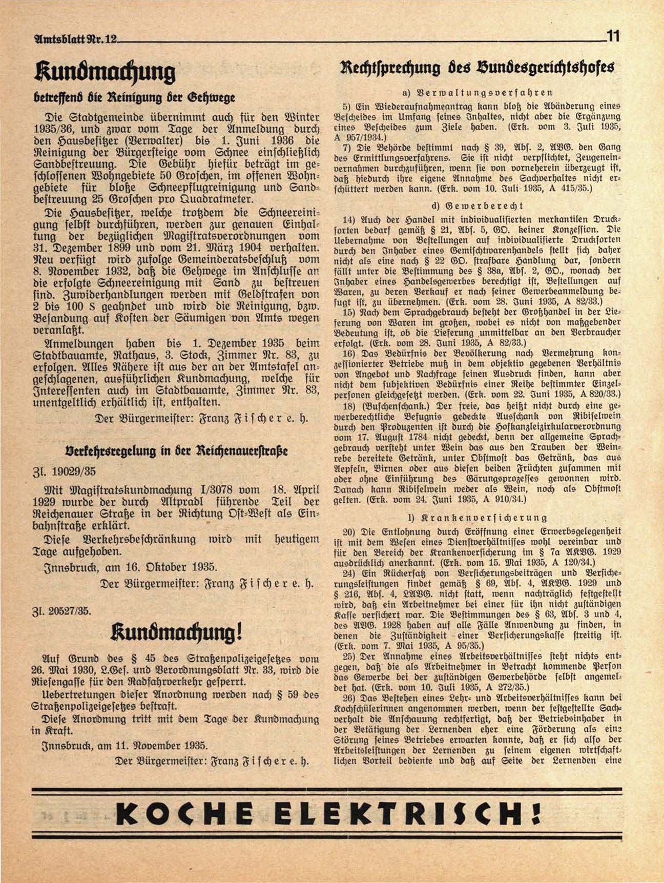 Die Hausbesitzer, welche trotzdem die Schneereinigung selbst durchführen, werden Zur genauen Einhaltung der bezüglichen Magistratsverordnungen vom
