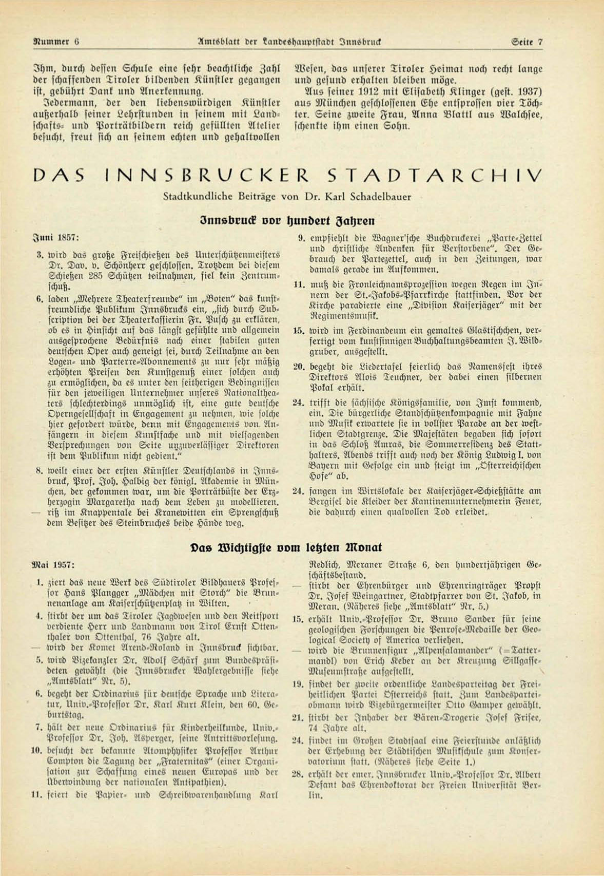 5». wird Vizekanzler D r . Adolf Schärf zum Vundespräsidcten gewählt (die Innsbruckcr Wahlergebnisse siehe