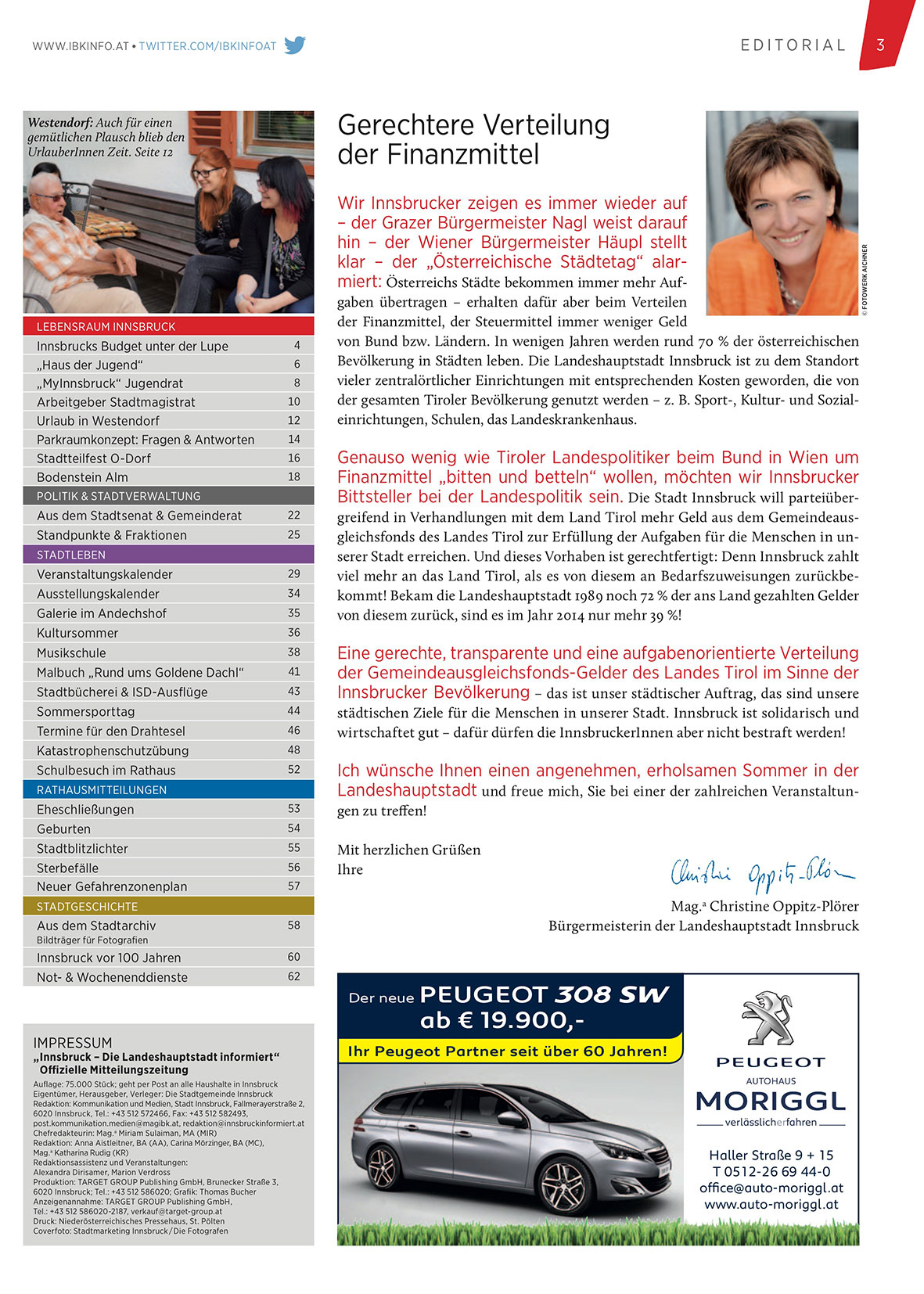 auflage: 75.000 stück; geht per Post an alle Haushalte in innsbruck
