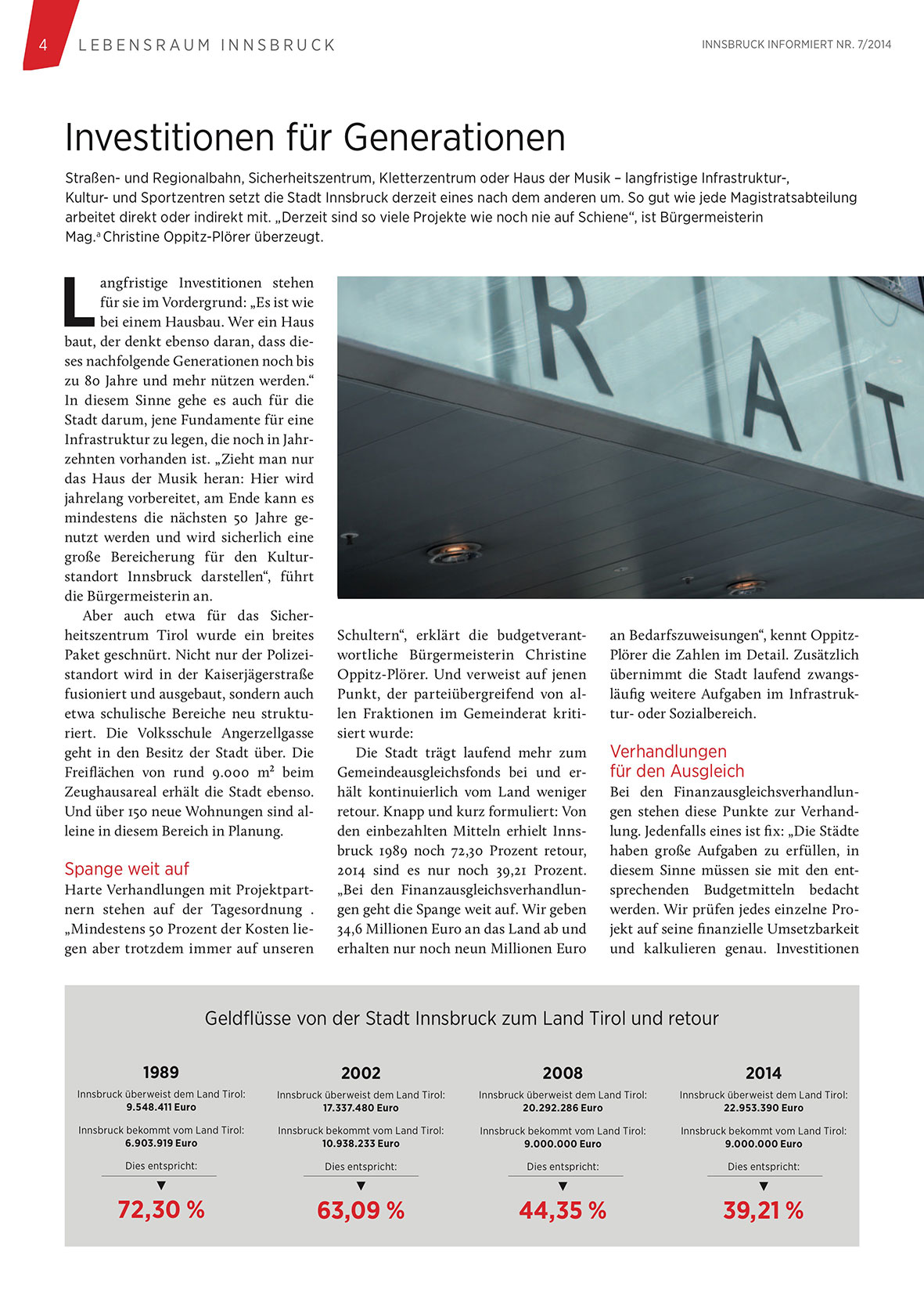 Geldflüsse von der Stadt Innsbruck zum Land Tirol und retour