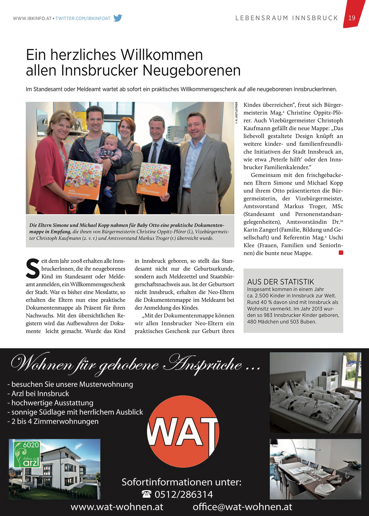 Wohnsitz vermerkt. Im Jahr 2013 wurden so 983 Innsbrucker Kinder geboren,