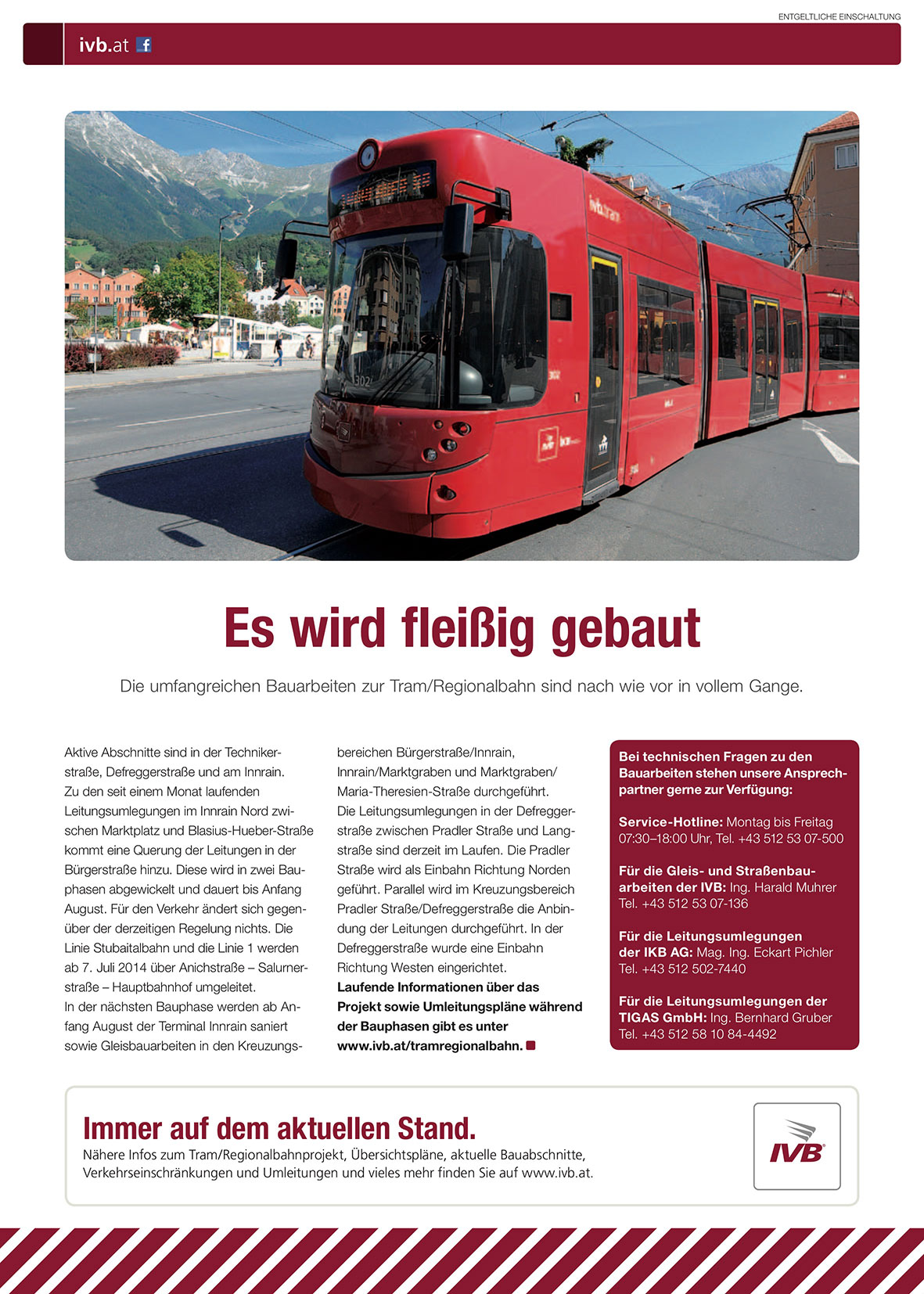 Verkehrseinschränkungen und Umleitungen und vieles mehr finden Sie auf www.ivb.at.