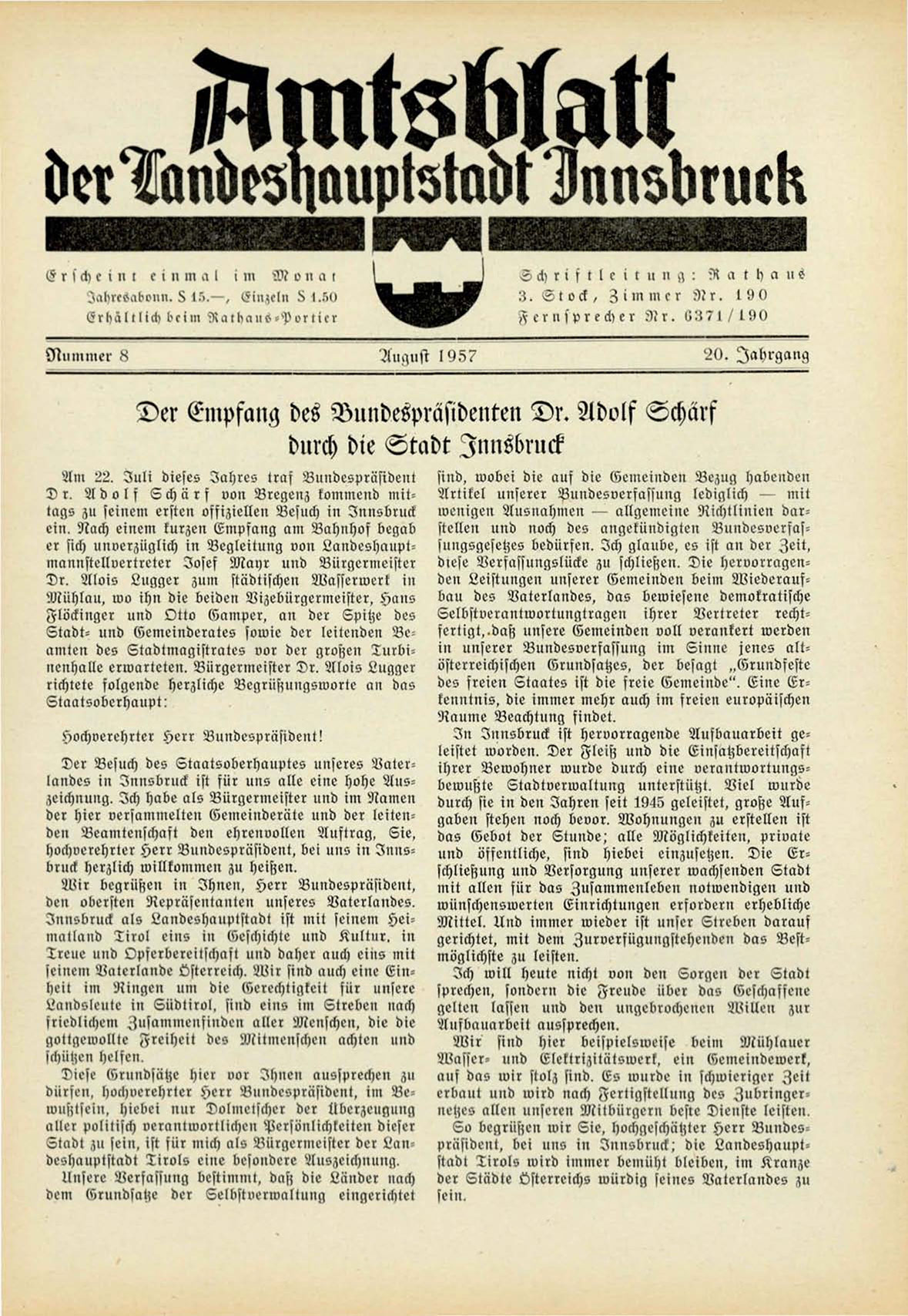 D r . A d o l f S c h ä r f von Vregenz kommend mittags zu seinem ersten offiziellen Besuch in Innsbruck