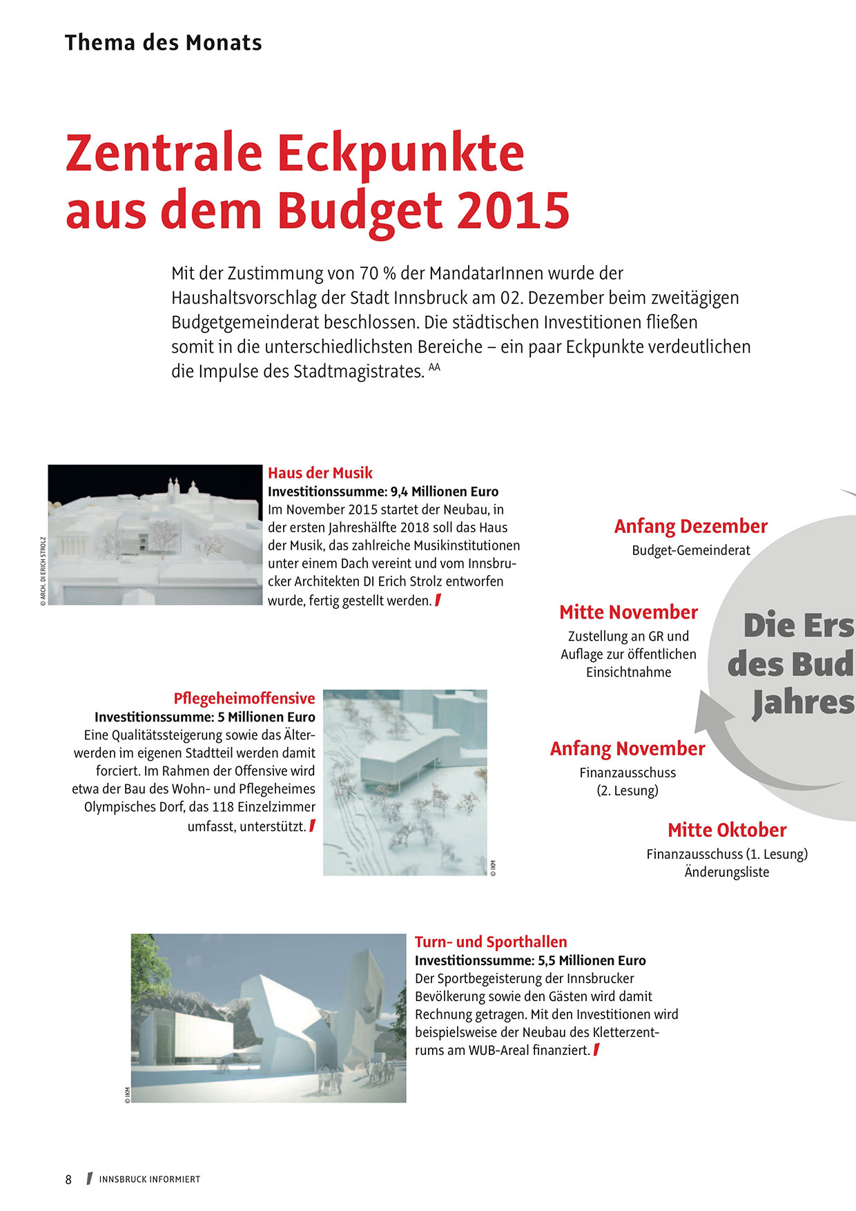 Haushaltsvorschlag der Stadt Innsbruck am 02. Dezember beim zweitägigen