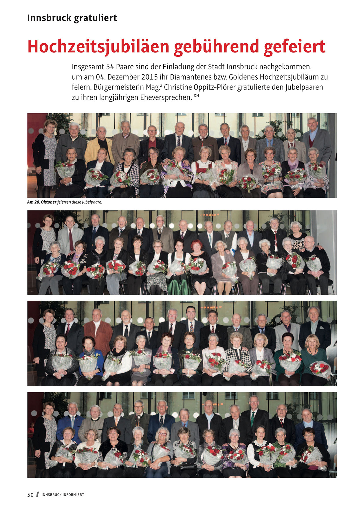 Insgesamt 54 Paare sind der Einladung der Stadt Innsbruck nachgekommen,