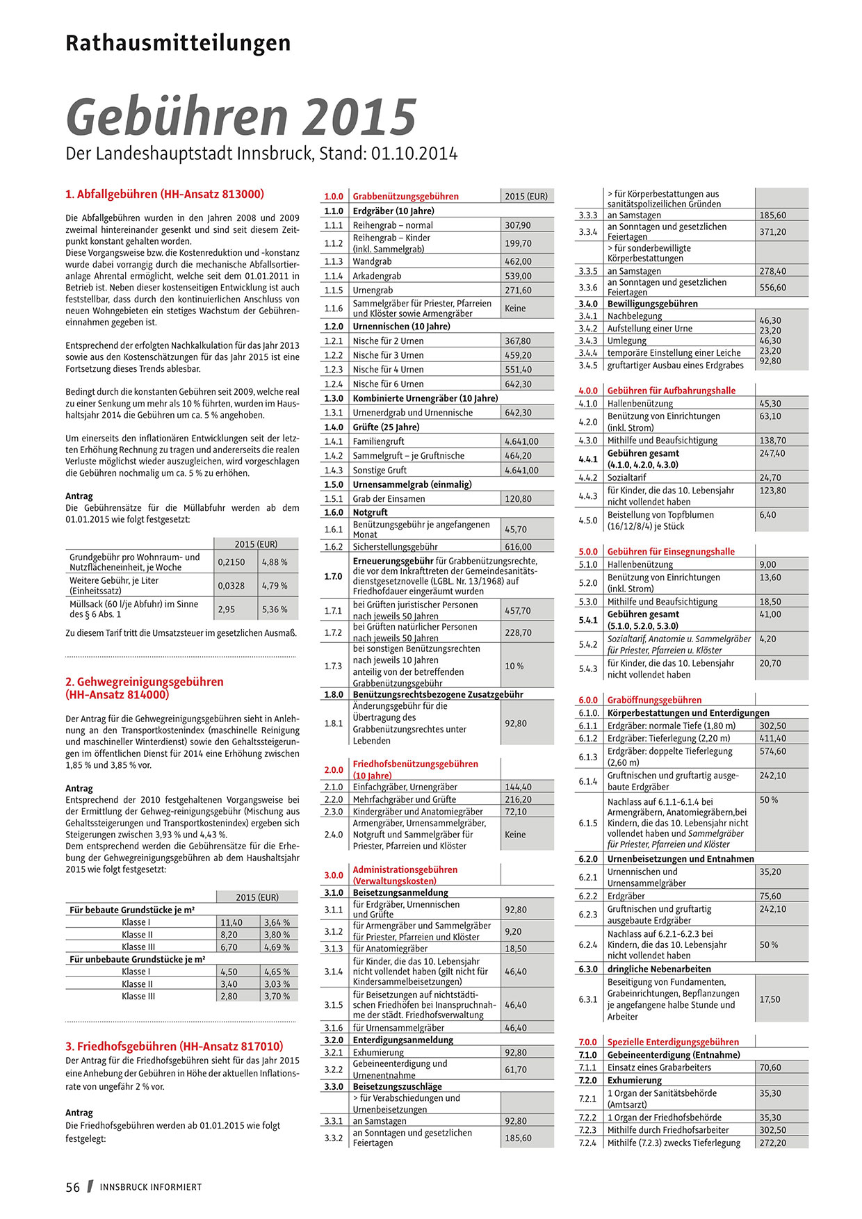 Der Landeshauptstadt Innsbruck, Stand: 01.10.2014