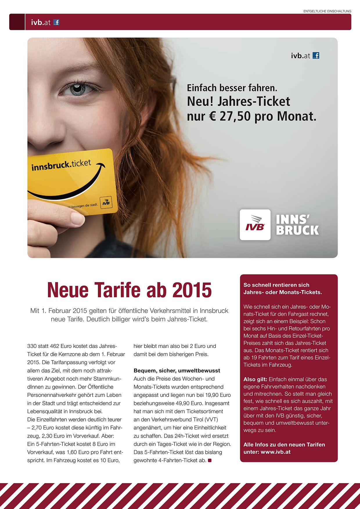 Mit 1. Februar 2015 gelten für öffentliche Verkehrsmittel in Innsbruck