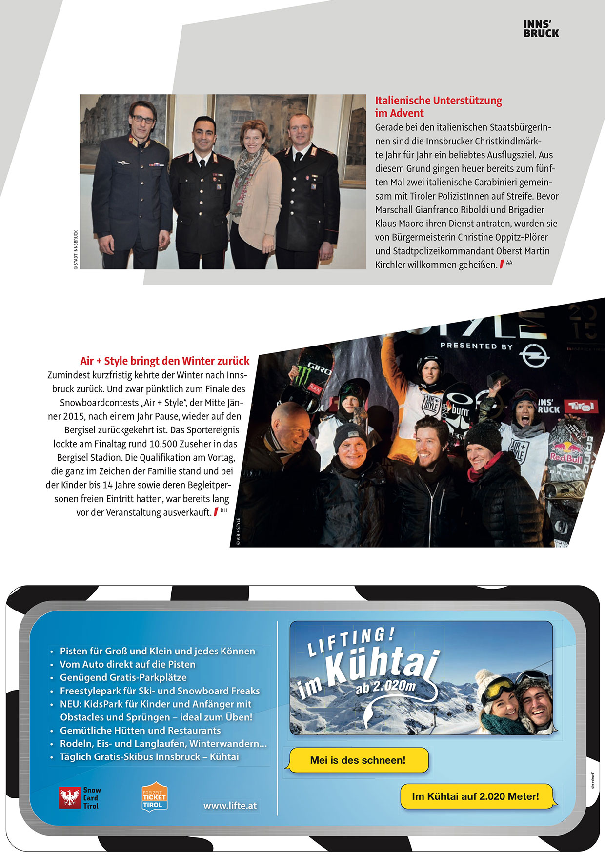 diesem Grund gingen heuer bereits zum fünften Mal zwei italienische Carabinieri gemeinsam mit Tiroler PolizistInnen auf Streife. Bevor