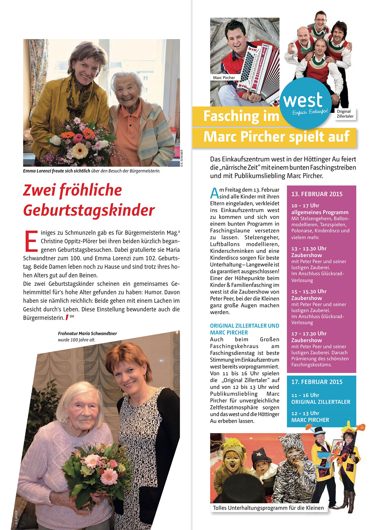 Schwandtner zum 100. und Emma Lorenzi zum 102. Geburtstag. Beide Damen leben noch zu Hause und sind trotz ihres hohen Alters gut auf den Beinen.